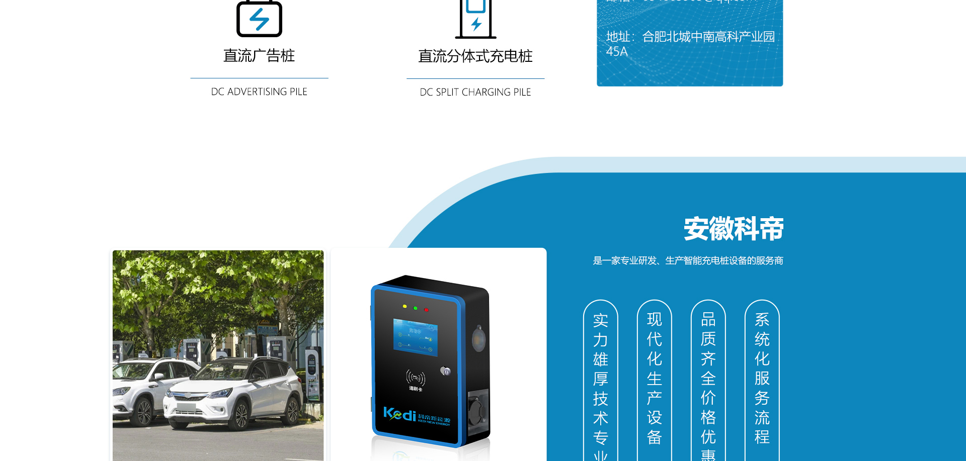 關于我們安徽科帝新能源科技有限公司坐落于安徽省會-合肥,是一家研發、生產智能充電樁設備,汽車充電站后臺監控管理系統和生產高壓開關設備的企業.由專門的研發團隊、管理團隊按照現代化企業制度規范設立的有限責任公司。致力于為能源智能、安全的應用和節能減排提供整體的技術與產品解決方案。科帝集研發、設計、生產、銷售以及服務于一體,在電動汽車充電方案,充電設施建設和城市配電方面擁有廣泛的技術研究及經驗積累,為客戶提供安全、智能的充電設備及充電運營站建設一體化解決方案。并堅持以人為本、質量為先、顧客至上、不斷創新”的企業理念,為能源行業的發展、節能減排做出重大的貢獻。公司擁有豐富的產品種類,目前科帝已研發生產了三十多種產品,充電設備有直流一體式充電樁、直流分體式充電樁、直流廣告樁、交流廣告樁、廣告一體樁、壁掛交直流樁;等多種充電設備;每一款產品都是精心打造,力求為客戶提供優越的用戶體驗。展望未來科帝將通過持續的自...